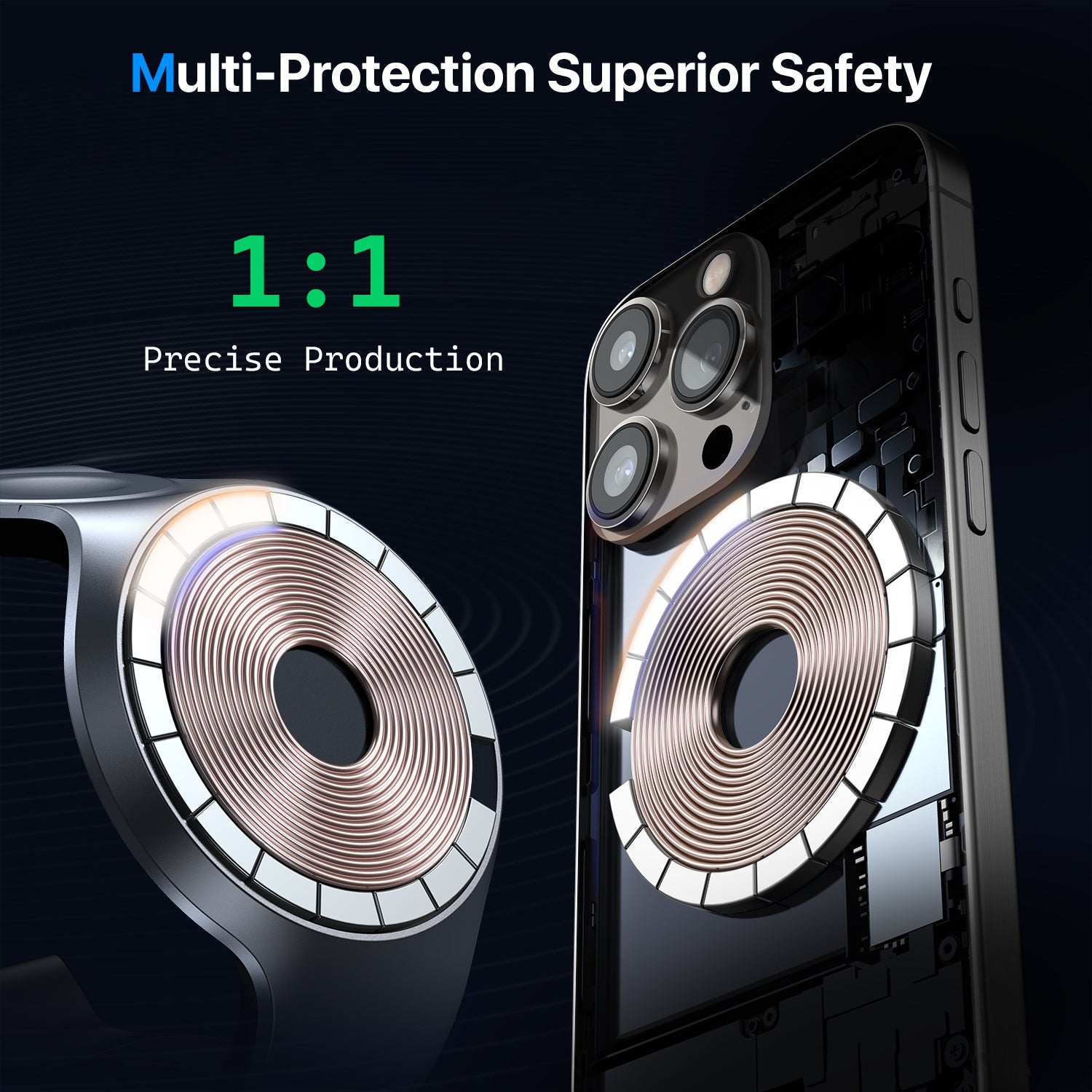- If you are an Apple enthusiast, this wireless charging station is a must-have. Say goodbye to the hassle of having multiple chargers, it can charge all your devices in one go. Specifically designed for Magsafe charger, this ultra-strong wireless solid magnetic charging stand ensures your phone can be used for entertainment in any direction (horizontal or vertical) while charging, serving not only as a charger but also as a phone stand.